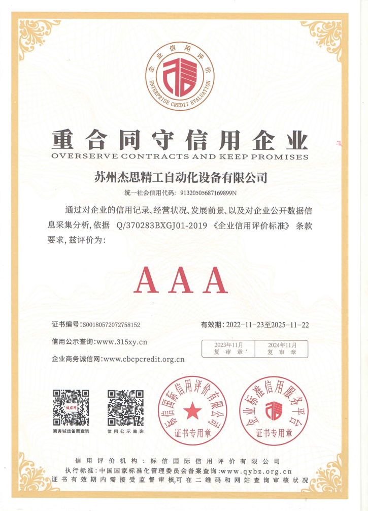 蘇州杰思精工自動化設備有限公司本著“高質量,優服務,求發展”的精神,